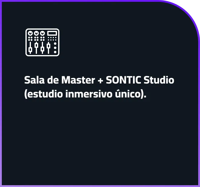 Somos estudio de grabación de sonido inmersivo para producciones de musica videojuegos y películas y además desarrollamos eventos y proyectos de innovación audiovisual con VR AR e IA